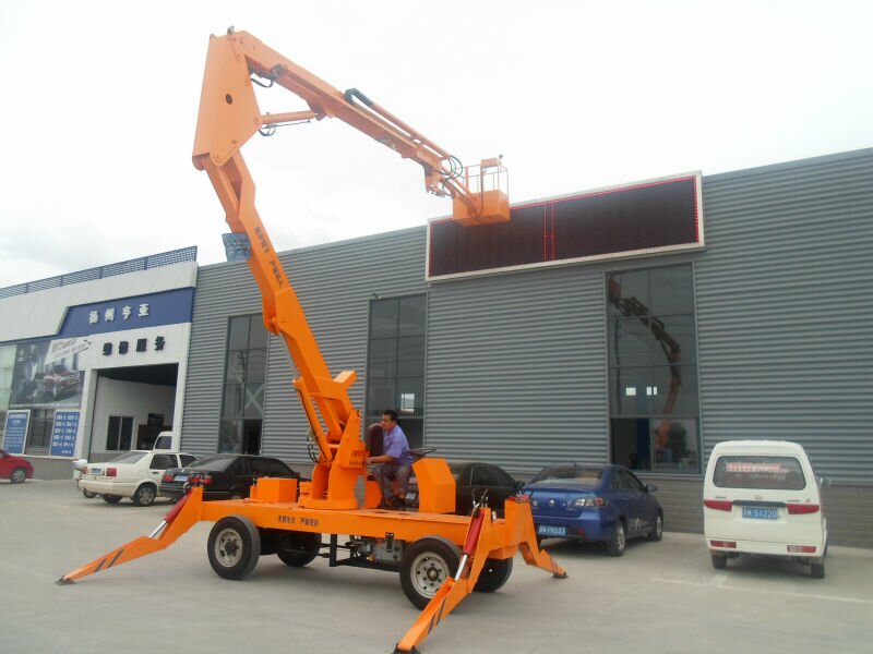 曲臂式高空作業平臺(即高空作業平臺車),是折臂式升降機的替代產品。整機采用折疊式工作臂,能進行懸伸作業,具有重量輕、自行走、電啟動、自支腿、操作簡單、作用范圍大、可360度自由旋轉等優點,并能跨越一定地障礙物或在一處連續升降進行多點作業,目前正廣泛應用于市政、電力車站、商場、碼頭、消防部門等場合。